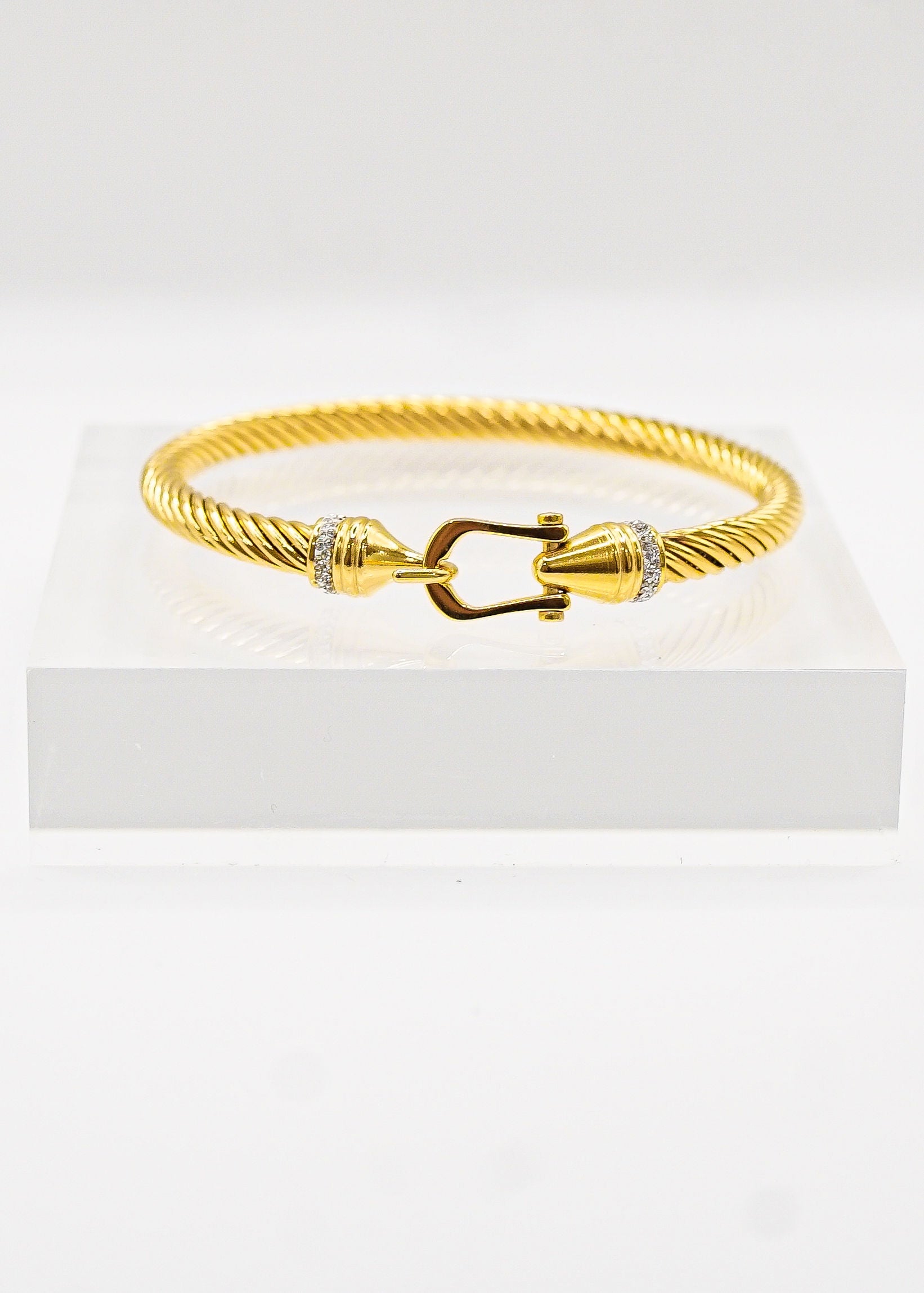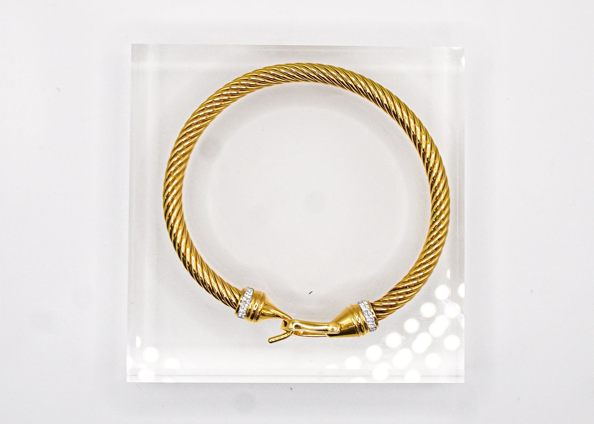 Introducing our newest addition to the jewelry collection - the twisted bracelet! This piece is for all our laid-back fashionistas who want to make a statement without trying too hard. Made from high-quality materials, this bracelet is lightweight and comfortable to wear all day long. The unique twisted design adds a touch of edginess to any outfit, perfect for both casual and dressy occasions. Upgrade your arm candy game with this must-have twisted bracelet!