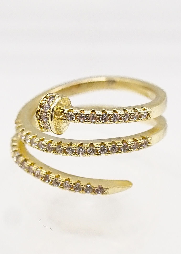 Treat yourself or someone special with our one-of-a-kind gold twirl ring. This statement piece is a symbol of elegance and grace, and will make a perfect addition to any jewelry collection. Whether you're dressing up for a night out or adding a touch of sparkle to your casual look, this ring will make a statement and leave a lasting impression. Don't miss out on this must-have accessory that combines timeless design and modern luxury.